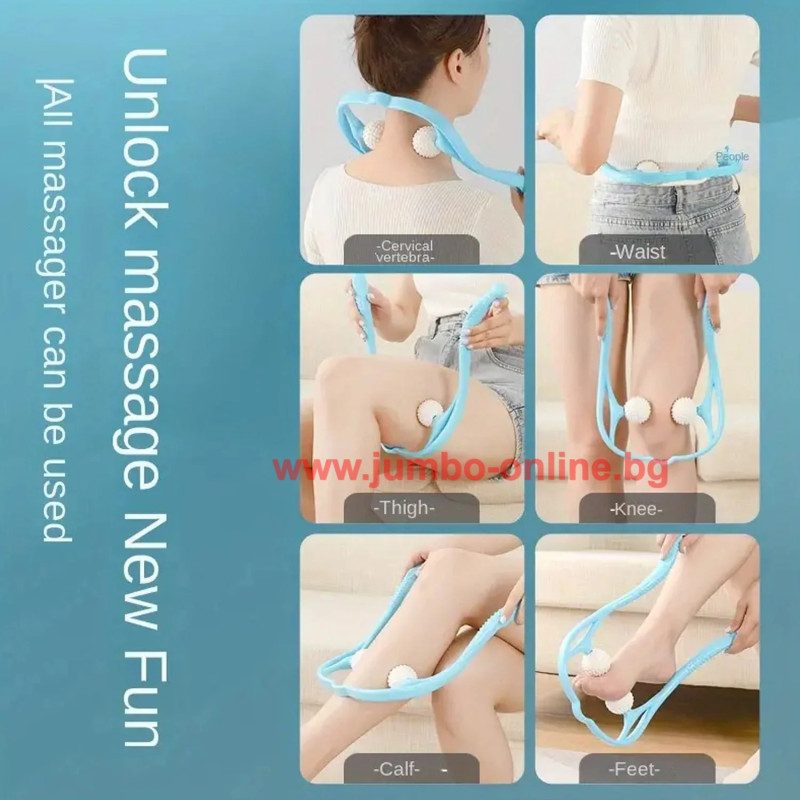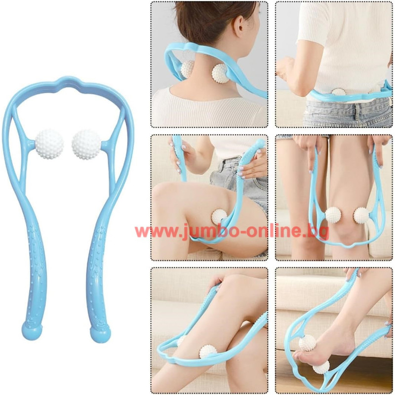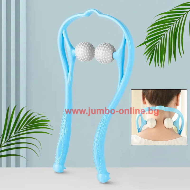 Ръчен масажор за врат с два силиконови накрайника от двете страни, разположени така, че да обхванат врата и да масажират мускулите до пълно отпускане и релакс.