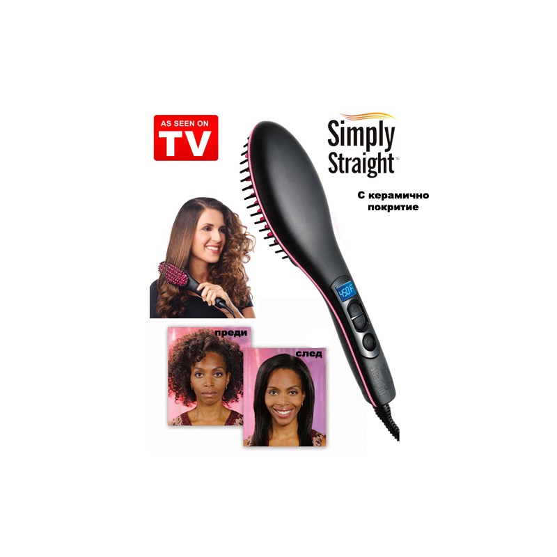 - Тук е Симпли Стрейт Делукс - новата керамична ел. четка за изправяне на коса, която комбинира силата на преса за коса с нежното разресване на четката за стилно оформена и изправена коса на мига.