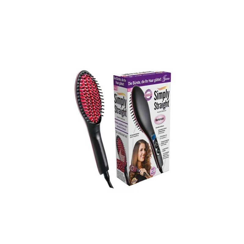 - Толкова е лесно - само разресваш косата си.Симпли Стрейт Делукс е с керамично турмалин покритие, което позволява четката да загрее до перфектната температура само за 1,5 минути за супер бързо изправяне на косата без никакво увреждане или изгаряне! А невероятната йонна технология прави косата по-мека и блестяща, без да губи от обема й.