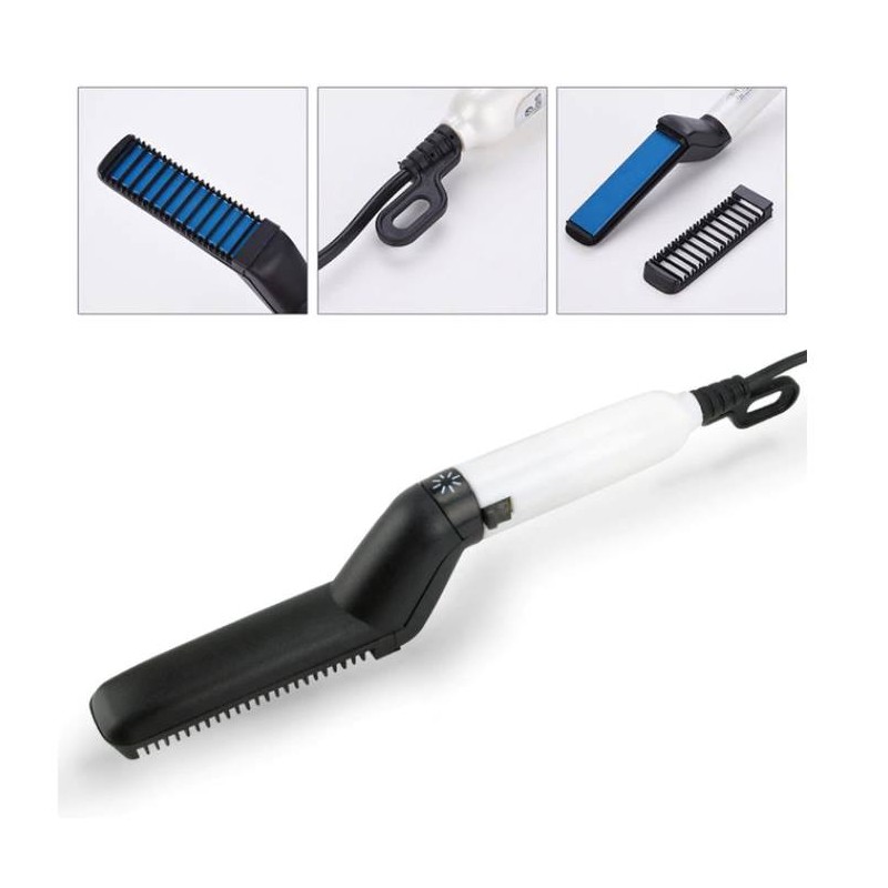 Мултифункционален уред за моделиране на мъжки прически и брада. Електрически гребен за изправяне или къдрене на коса и брада. Изключително удобен аксесоар за тези от Вас, които поддържат брадата си в прилежен вид. Може да го използвате като маша или преса за брада. Този гребен ще ви послужи и в оформянето на косата. Ваш верен приятел в стилизирането на мъжки прически. Подходящ за професионална или любителска употреба, а резултатът е: БЪРЗИ И ЛЕСНО ПРОФЕСИОНАЛНИ РЕЗУЛТАТИ С УДИВИТЕЛЕН ЕФЕКТ!