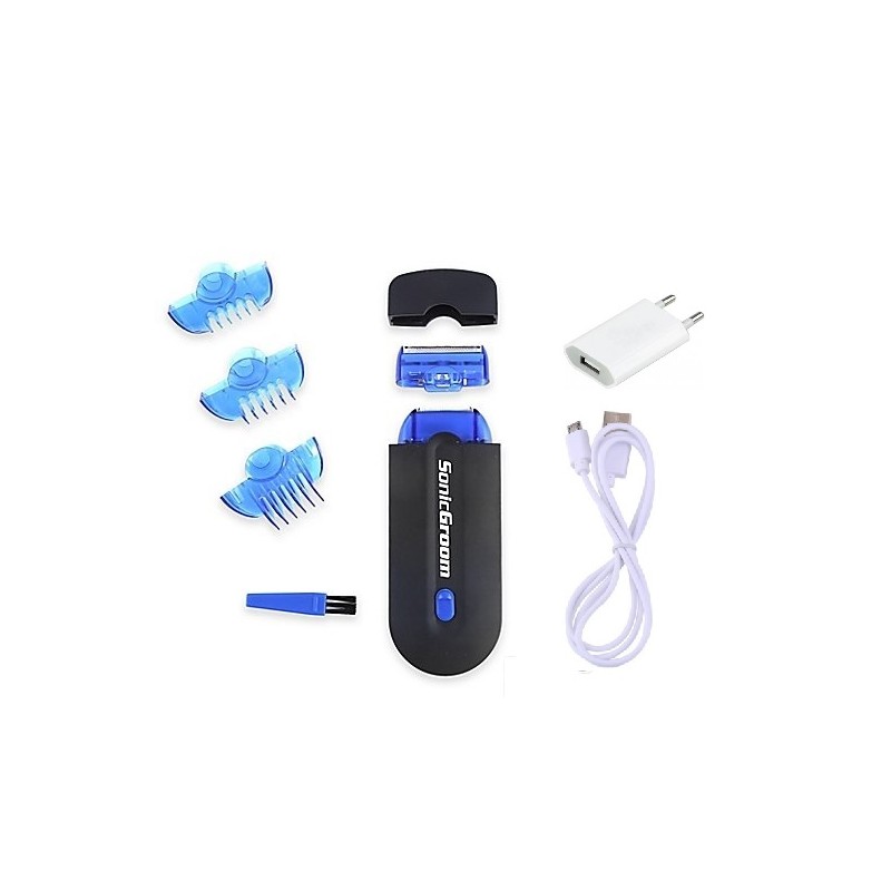 Многофункционална машинка за безупречно подстригване, бръснене и перфектно оформяне на прическа и брада - тример Sonic Groom в комплект с приставки, четка за почистване и USB зарядно.