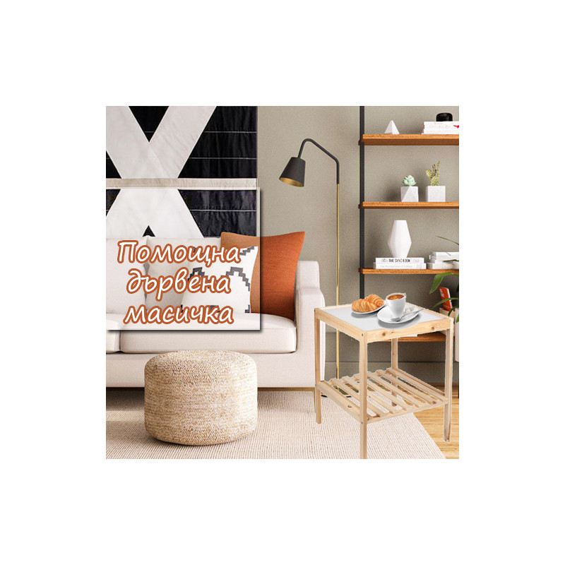 Компактна масичка от дърво, подходяща за сервиране на чай и кафе.