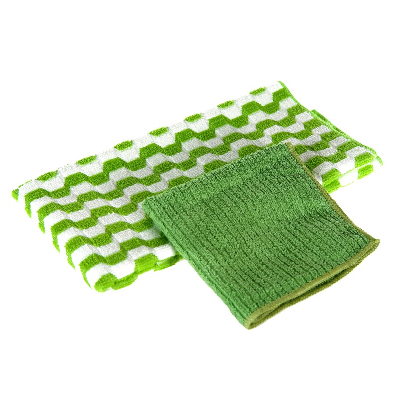 Комплект от 2 броя микрофибърни кърпи (малка и голяма) в зелен цвят за почистване на всички видове повърхности.