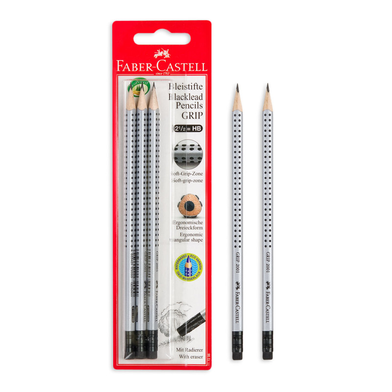 Комплект от 3 броя класически моливи FABER-CASTELL с висококачествен средно твърд черен графит и гума.