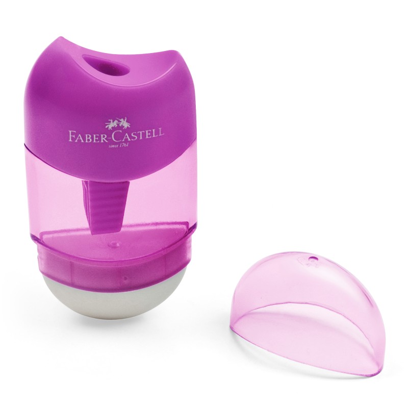Гума за молив с предпазен капак + острилка с контейнерче в лилав цвят FABER-CASTELL.