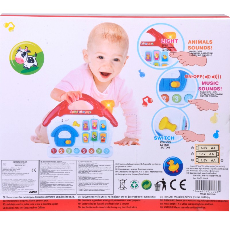Интерактивна бебешка играчка - музикална къщичка със звуци на животни, мелодии и светлини.