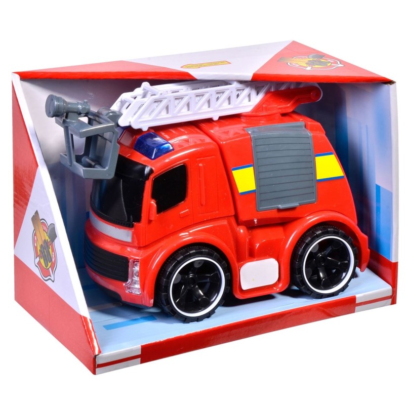 Занимателна бебешка играчка - пластмасова пожарникарска кола със звук и светлина.