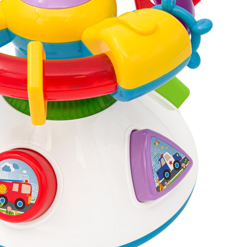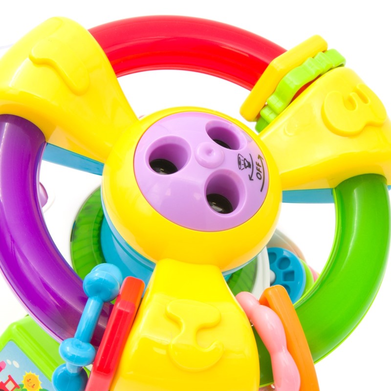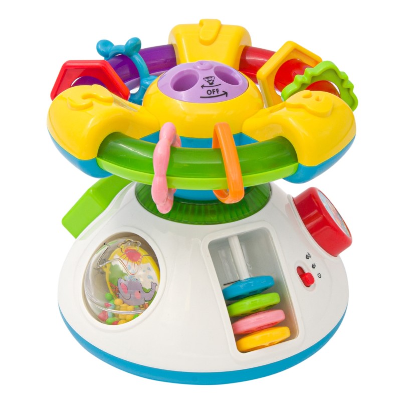 През деня е занимателна играчка, която ще забавлява Вашето бебе с часове, а вечер се превръща в светещ прожектор за детето, когато е в леглото.