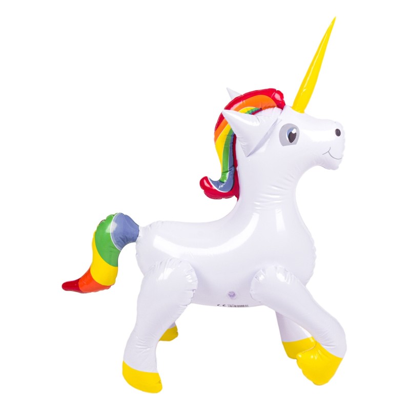 Надуваема играчка във формата на еднорог в ярки цветове.