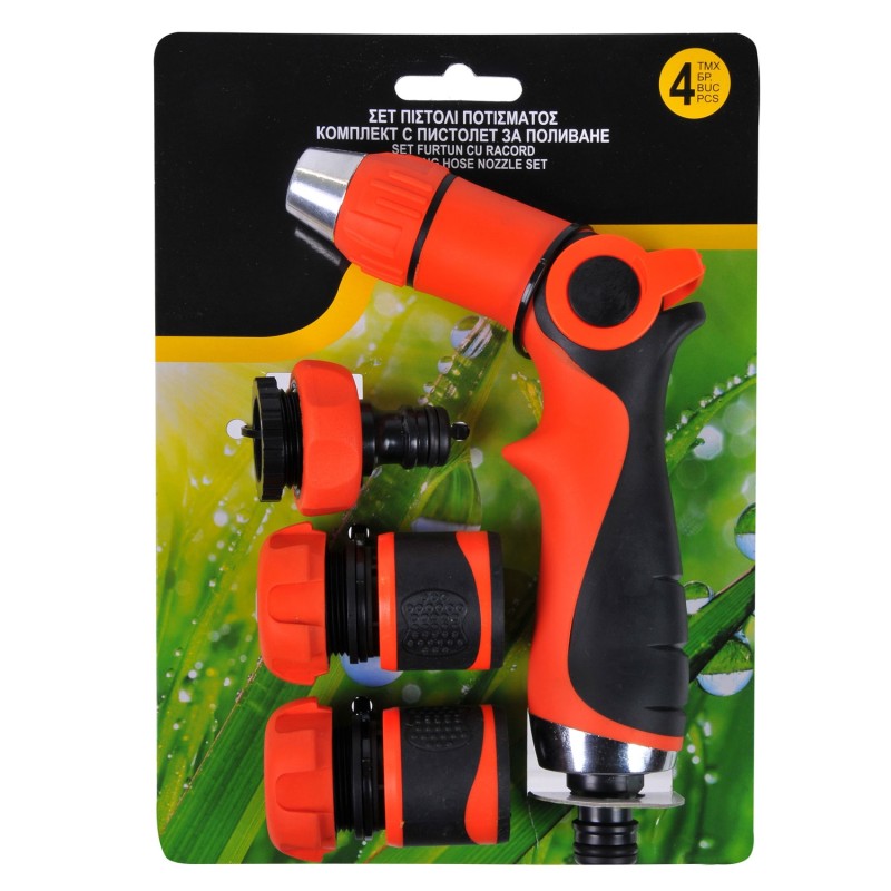 Пистолет за градински маркуч за поливане на дворове и градини в комлект с накрайници.
