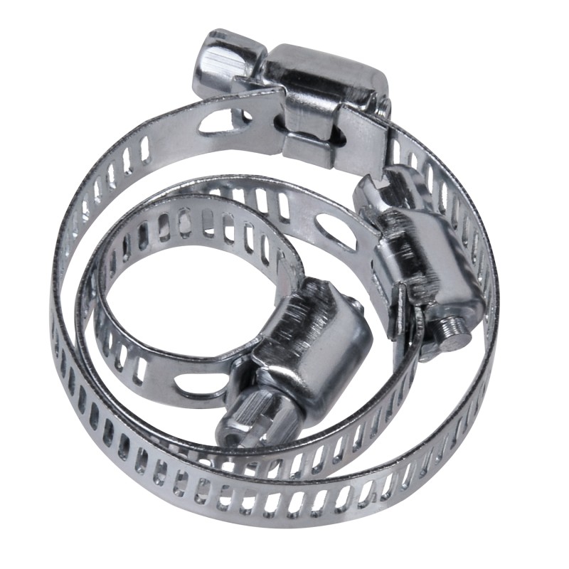 Комплект от 8 броя скоби за градински маркучи с различни размери, изработени от неръждаема метална сплав.