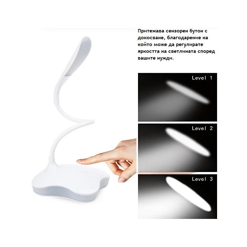 Красивна настолна лампа, подходяща за работа в офис или за нощна лампа. Изработена в нестандартен, но универсален и стилен дизайн с гъвкава шия, която може да се насочва в различни посоки.