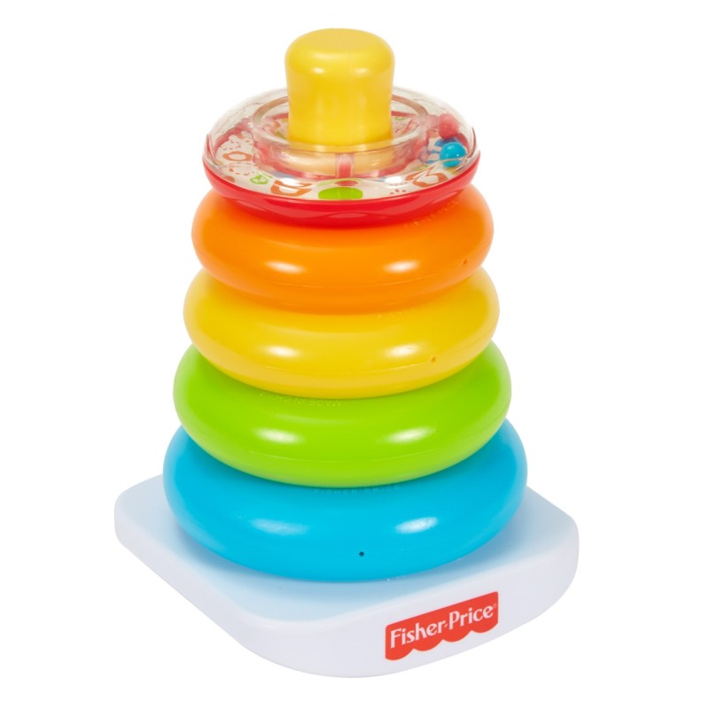 Играчката развива уменията на бебето, чрез решаване на задачи и подреждане на ринговете в правилен ред по големина.