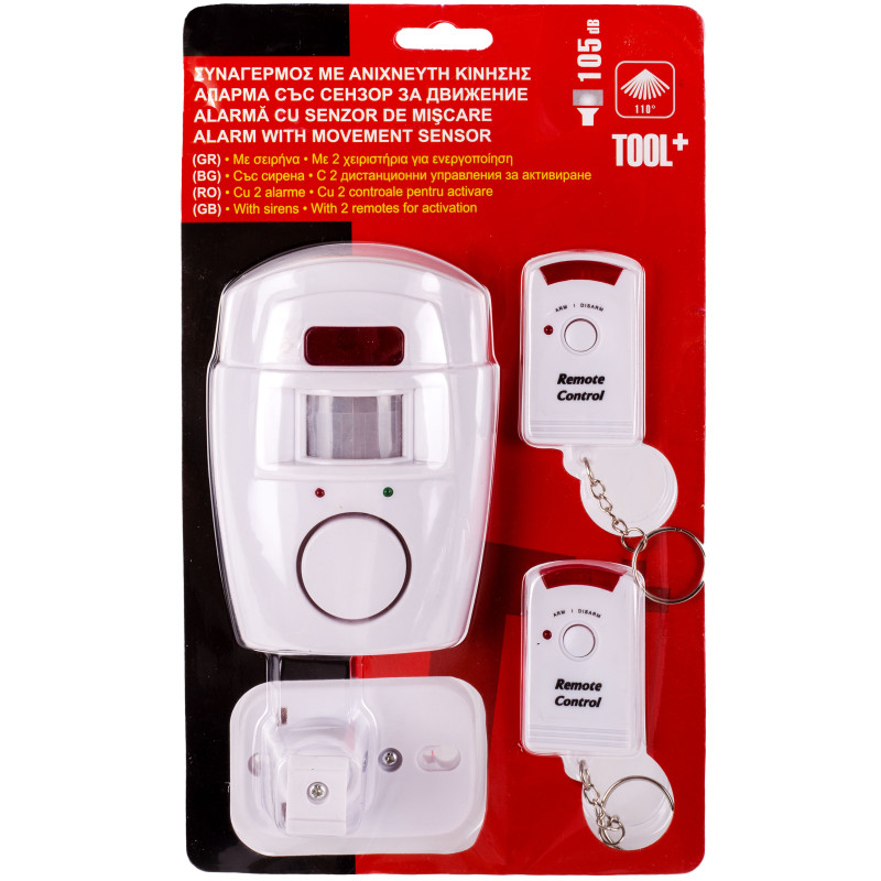 Аларма със сензор за движение в комплект с 2 бр. дистанционни управления за активиране и сирена.