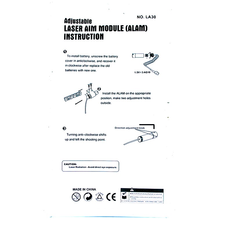 В комплекта е включен: лазер, 4 броя батерии, отвертка, шестограм. стойка