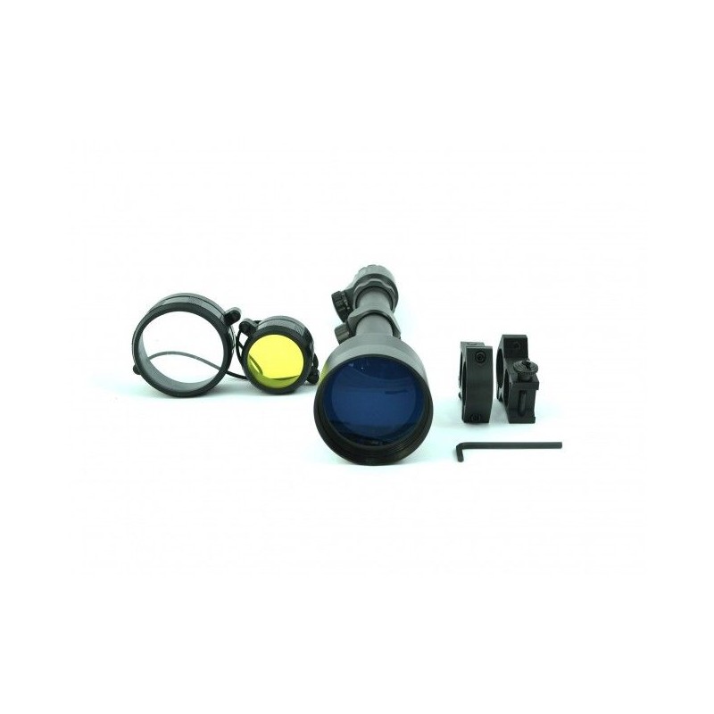 Оптиката е с вариаторно приближение в диапазон от 3 до 9 пъти с диаметър на предната леща 50 мм с матов финиш.