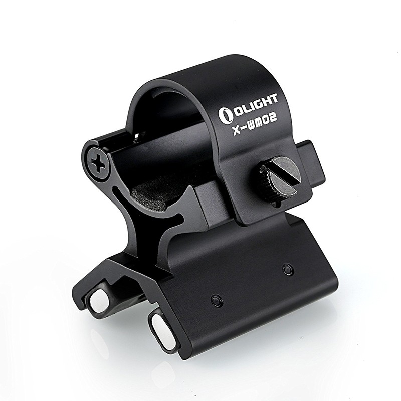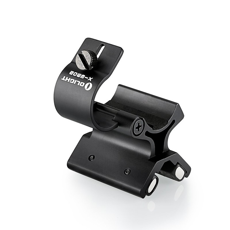 Магнитен монтаж за фенери към оръжие OLIGHT X-WM02. Монтажът за фенери Olight X-WM02 e нов, подобрен вариант на X-WM01 с по-силни магнити, позволяваш прикрепване на фенери с по-голям рефлектор