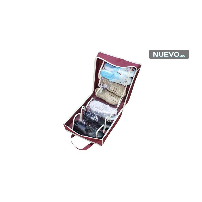 Грабнете на супер ниска цена практичния органайзер-чанта за обувки! Той ще бъде новата Ви любима придобивка, която ще Ви помага при пътуване или, когато искате да вкарате дома си в ред!