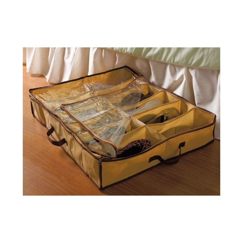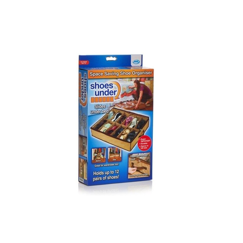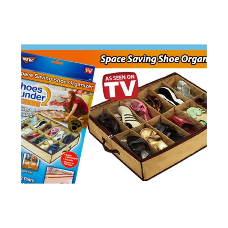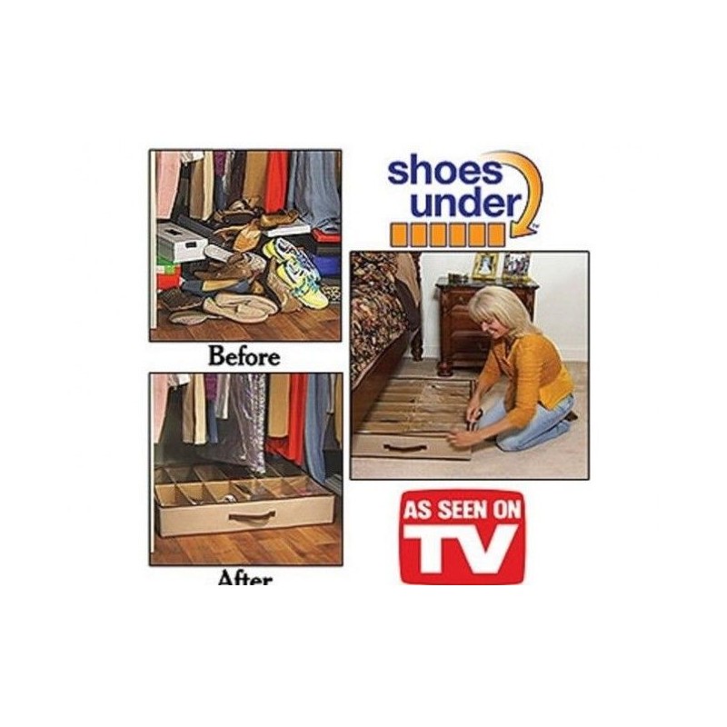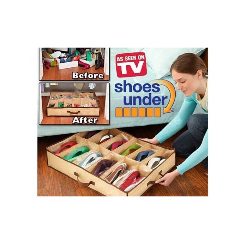 Shoes Under e удобен органайзер позволява подреждането и затварянето на 12 чифта обвки - далеч от буболечки и прах.