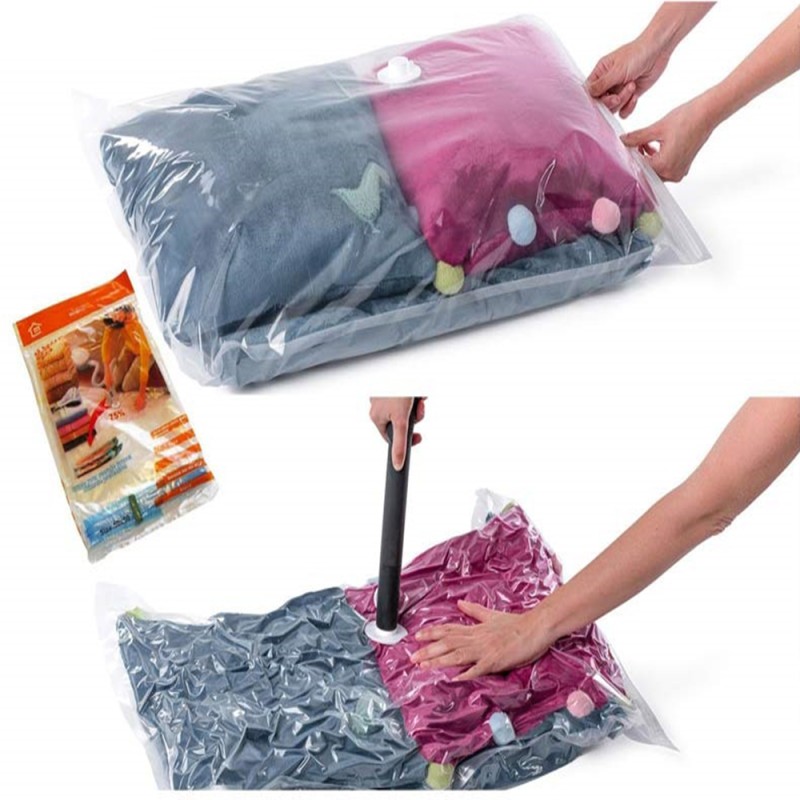 Напълно предпазват вашите вещи от стареене, насекоми, влага и прах. Намаляват обема на поставените предмети над 75% и можете да ги приберете под леглото, в гардероба, в гаража, на тавана или в куфар и т.н. Вакуумиращите торби са изработени от здрав многопластов полиетилен, който позволява вакуумиране на предметите без да ги уврежда и нарушава формата им. Затварят чрез здрав “цип” с плъзгач, който уплътнява плика херметически и осигурява защита на вашите дрехи. Стабилна затваряща система. Стандартен отвор за изтегляне на въздуха, чрез който можете да ползвате всички видове прахосмукачки за създаване на вакуум. Големи прозрачни участъци на торбата за лесно намиране на желаната дреха. За многократна употреба.а