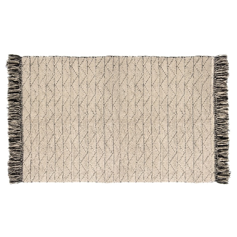 Постелка за под, изработена от мека и приятна материя със стилни шарки в бежов цвят с декоративни ресни от двете страни.