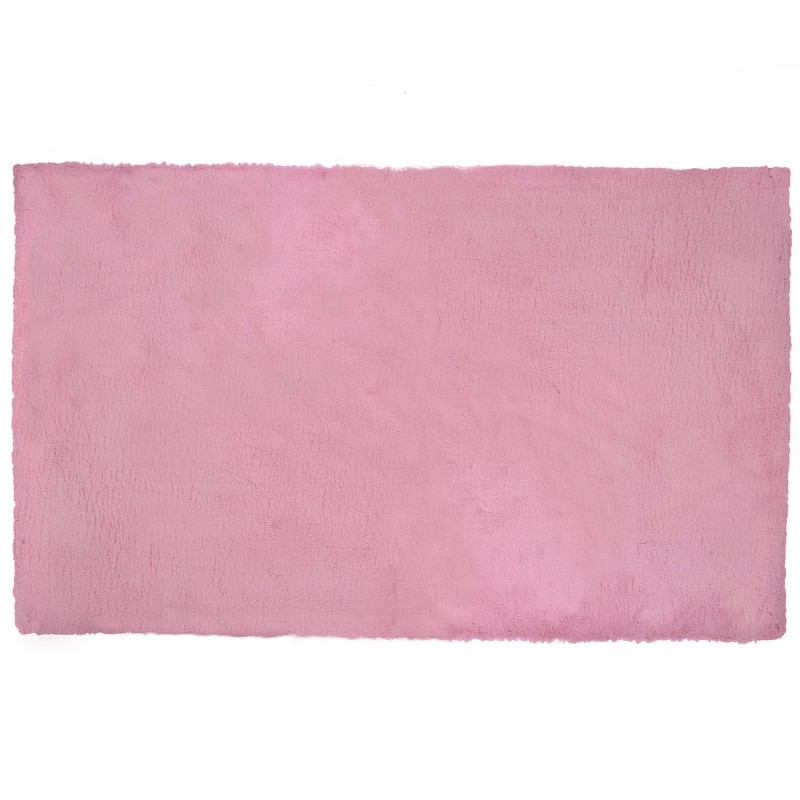Постелка за под, изработена от мека и пухкава материя, наподобяваща вълна в розов цвят.
