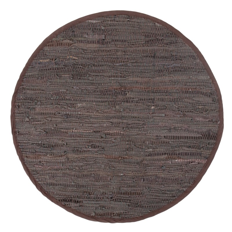 Кръгла постелка за под, изработена от памук в тъмно кафяв цвят.