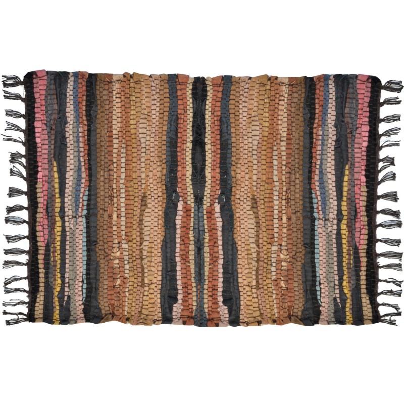 Постелка за под, изработена от памук с черно-кафяви шарки и декоративни ресни от двете страни.