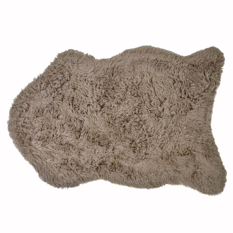 Постелка за под, изработена от мека и пухкава материя, наподобяваща вълна в кафяв цвят.