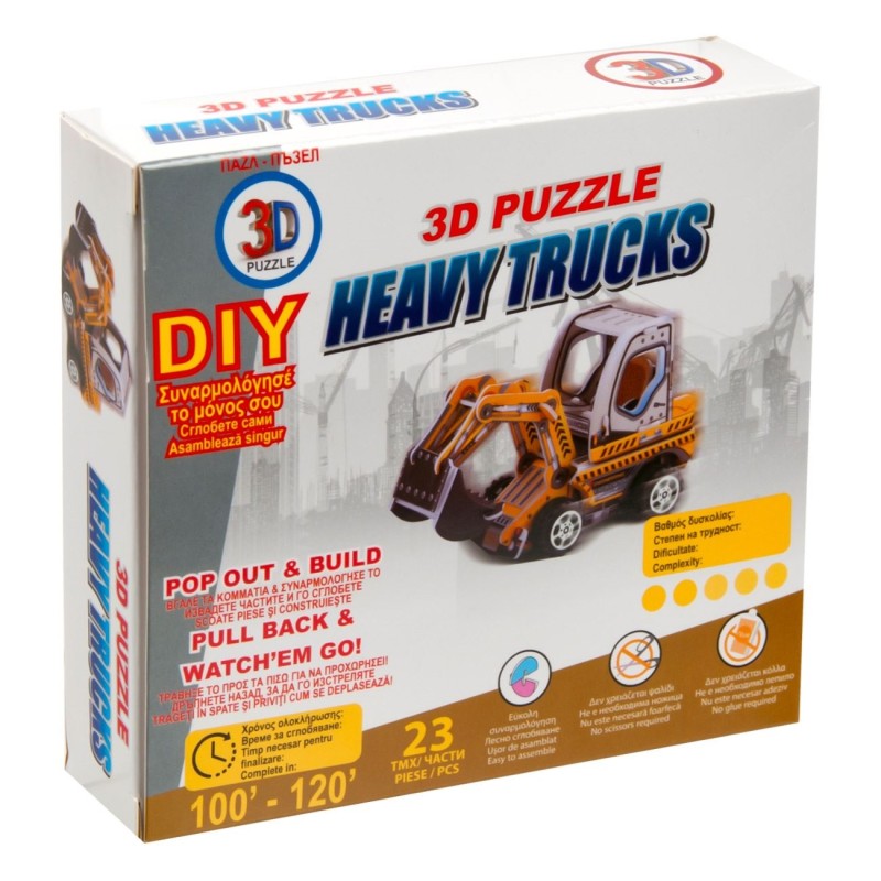 За сглобяването на пъзела не са необходими ножица и лепило, а когато детето го сглоби може да продължи игра с вече готовата играчка - достатъчно е само да дръпне багера назад, за да го изстреля.