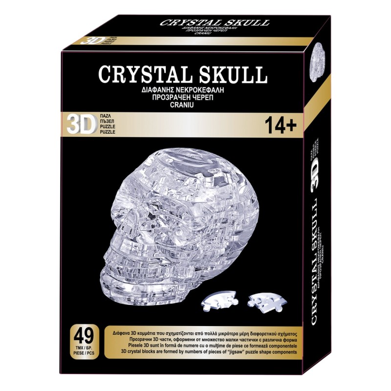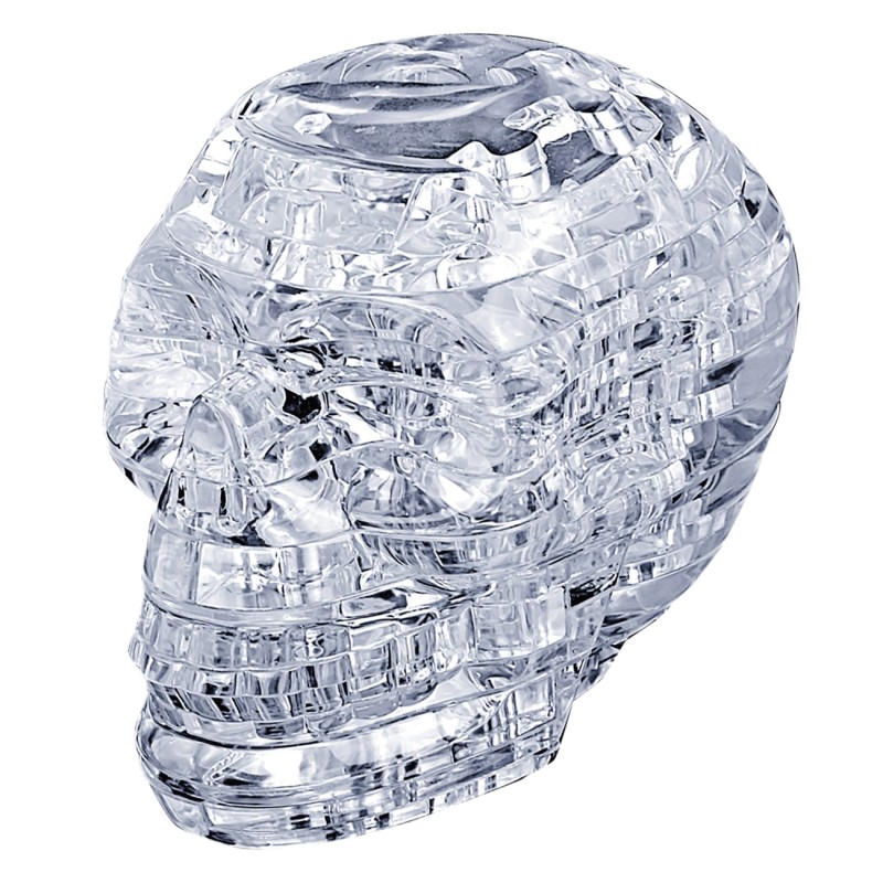 Уникален 3D пъзел във формата на прозрачен череп, изработен от висококачествени и безопасни материали, имитиращи кристал.