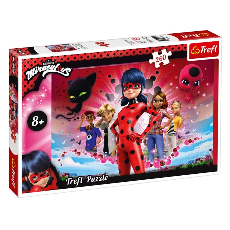 Голям детски пъзел с ефектна цветна илюстрация на любимите герои от MIRACULOUS.