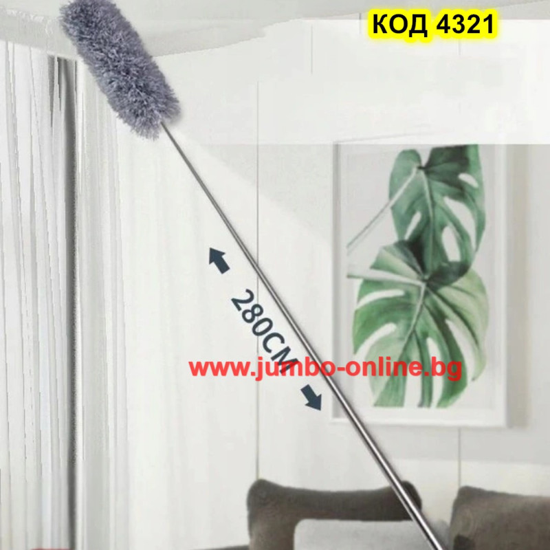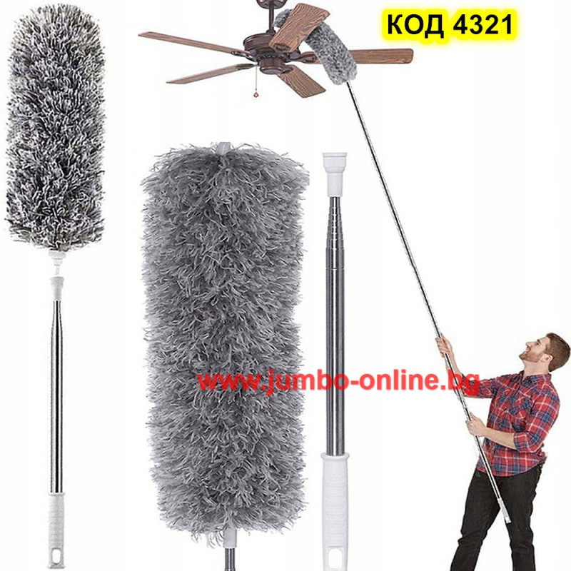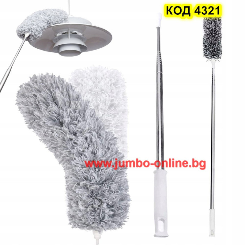 Телескопична четка за прах с микрофибърна глава | Дръжка с дължина до 280 см за трудно достъпни места