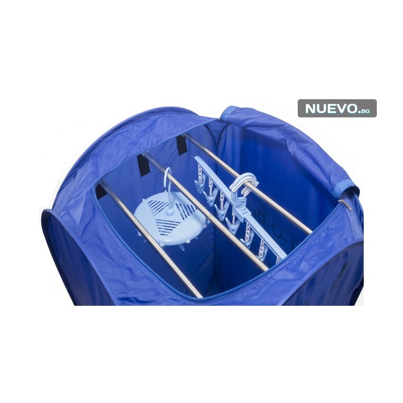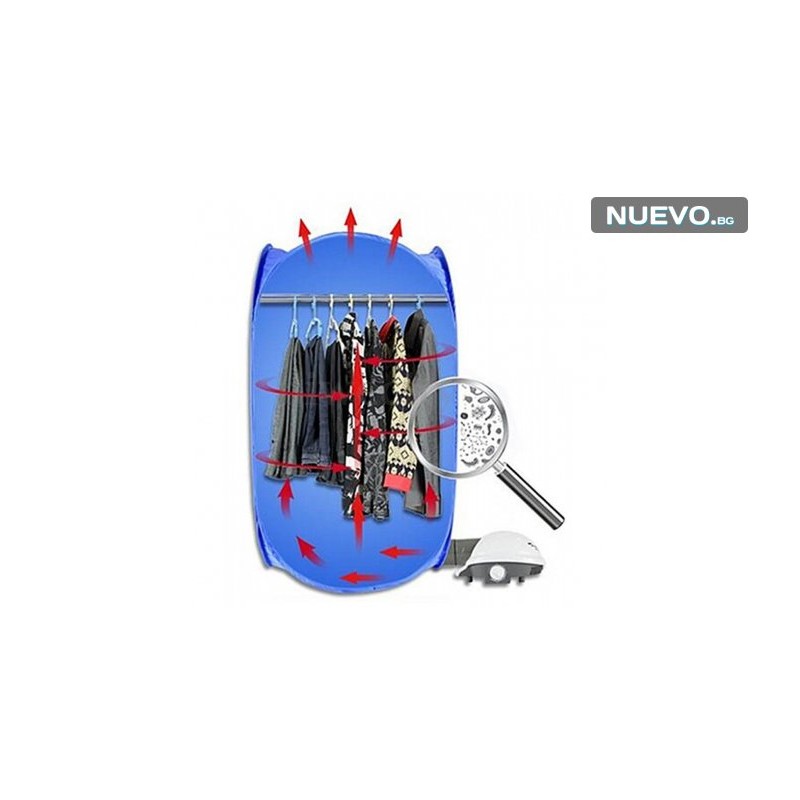 Уредът работи с помощта на въздушна помпа, която произвежда мощен въздушен поток, напълно безшумно. Побира около 10 кг дрехи, а времето , за което ще станат напълно сухи, е между 1 и 2 часа. Разполагате с 3 лоста, на които трябва да поставите закачалките. След като пуснете устройството, сте свободни да вършите каквото поискате. Изделието е безопасно за употреба, дори без надзор.