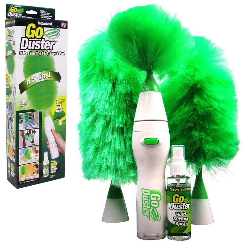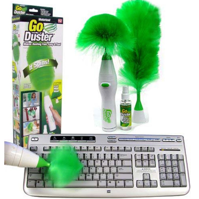 Motorized GoDuster е революционно моторизирано чистач, който прави чистенето на прах по-бързо, по-лесно и по-забавно, отколкото някога сте си представяли! ри броя различни на големина глави подходяши за различни пространства. Прахът се задържа по влакната на база статичното електричество. В комплекта е включен ПРАЗЕН флакон за пълнене с препарат - антистатик от магазините за битова химия. НЕ СЕ ДОСТАВЯ ПЪЛЕН! Купува се от магазините за битова химия.