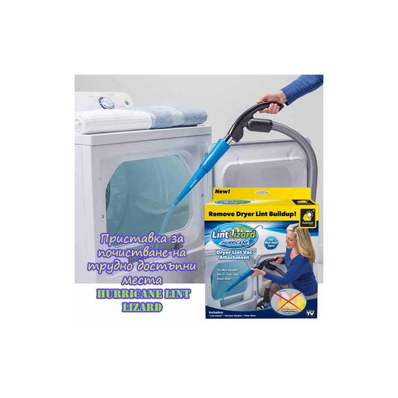 С приставката за почистване на трудно достъпни места Hurricane Lint Lizard лесно и безпроблемно ще почистите замърсяванията от сушилнията, между и под мебелите!