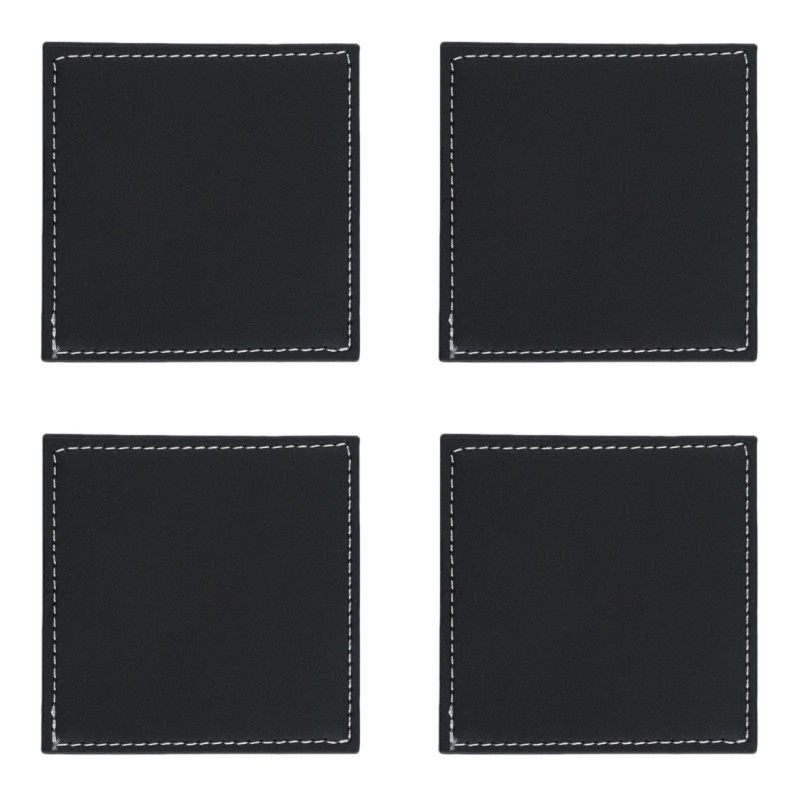 Комплект от 4 броя квадратни подложки за чаши, изработени от качествени материали в черен цвят с декоративен шев.
