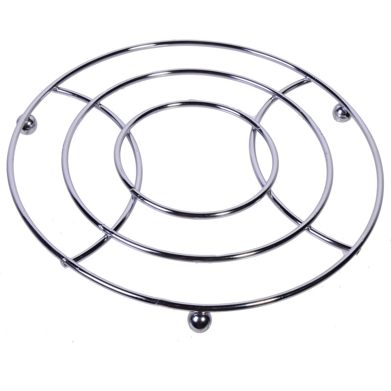 Подложка за горещи съдове, изработена от неръждаема стомана с хромирано покритие и крачета.
