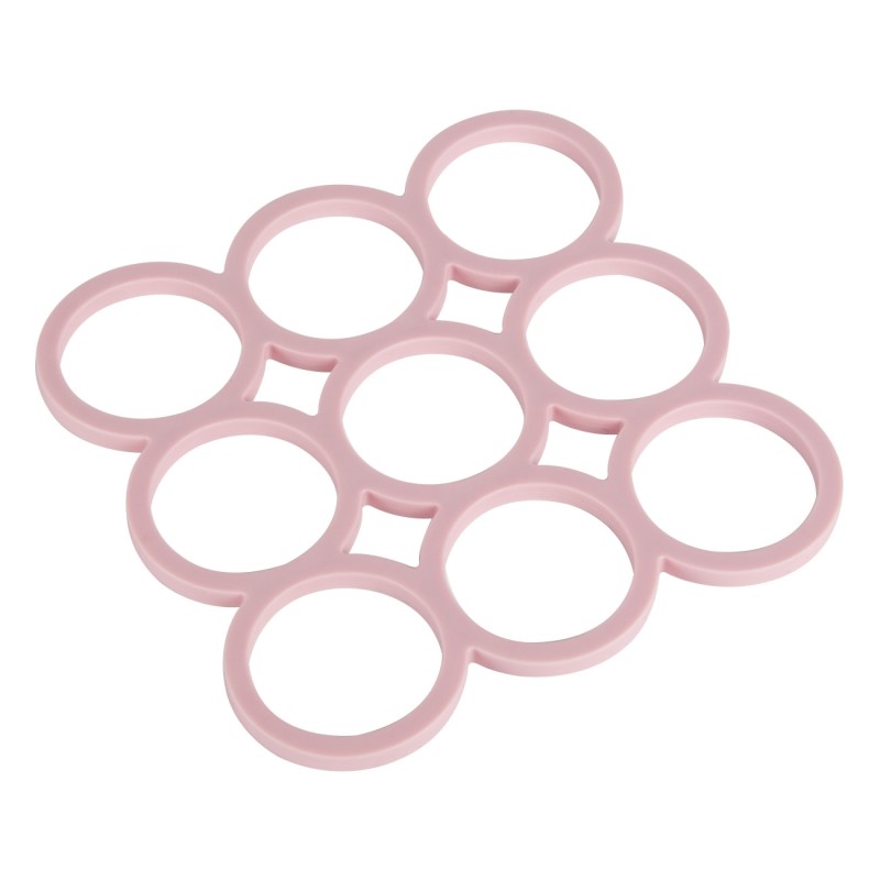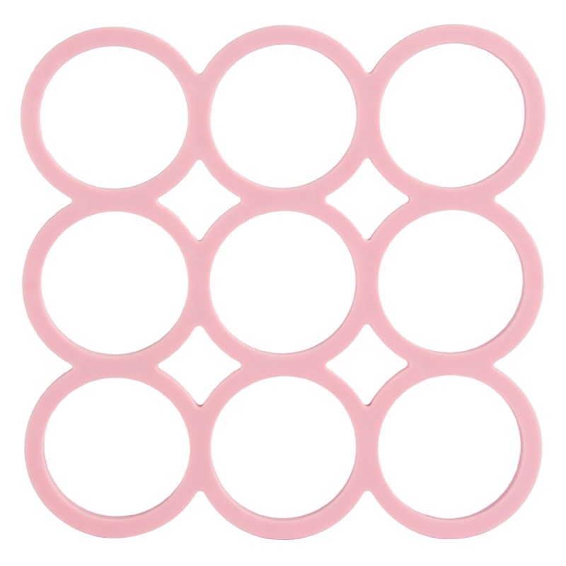 Подложка за горещи съдове, изработена от качествени и термоустойчиви материали в розов цвят във формата на кръгове.