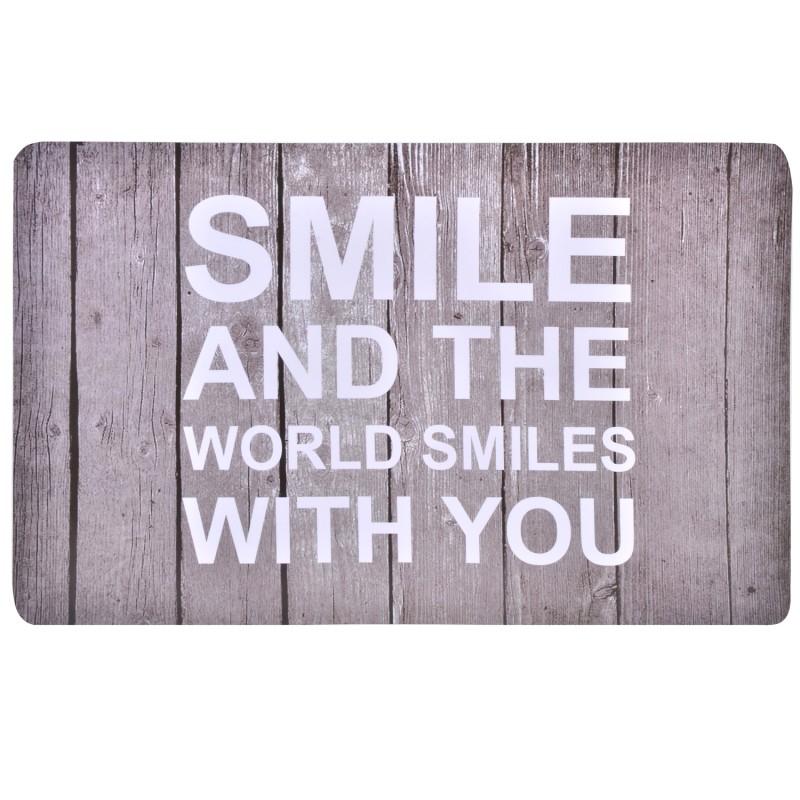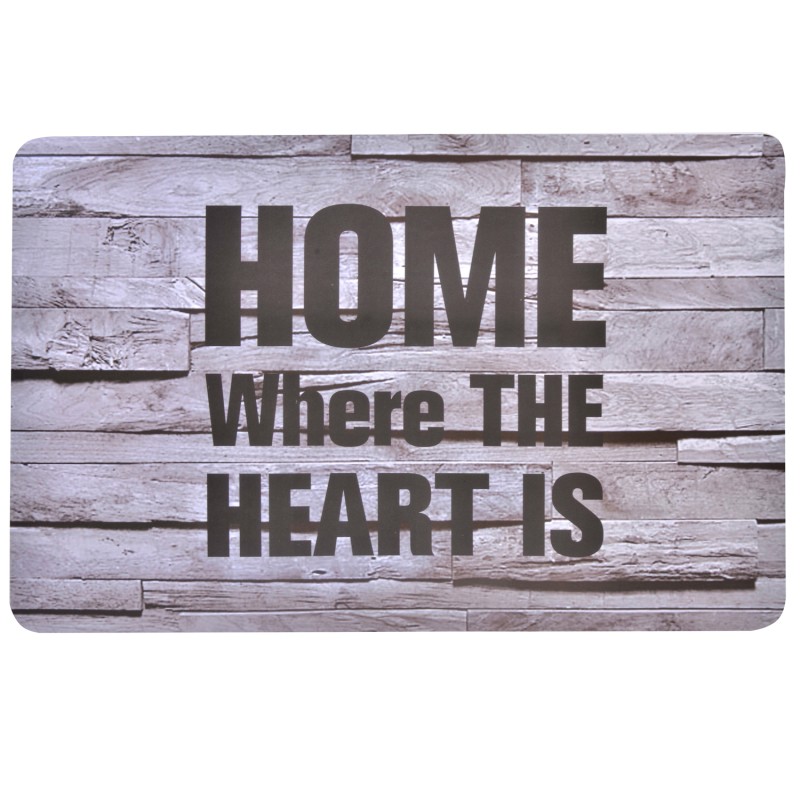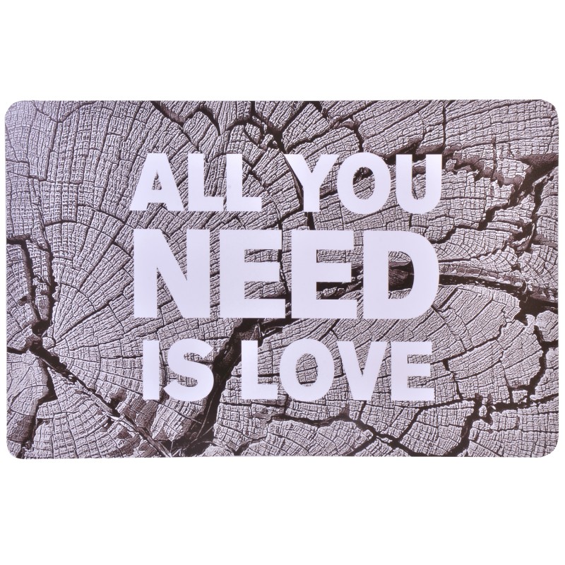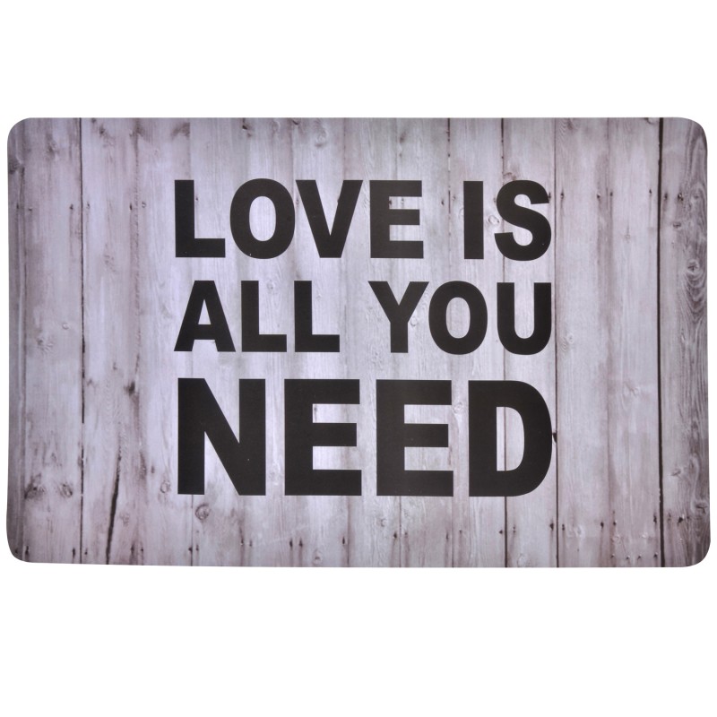 Комплект от 4 броя подложки за хранене, изработени от висококачествена пластмаса с принт на дървени дъски и различни надписи в черно и бяло.