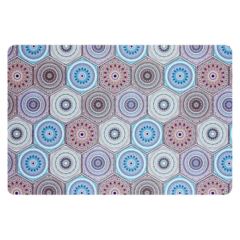 Подложка за хранене, изработена от висококачествена пластмаса с принт на разноцветни кръгове.