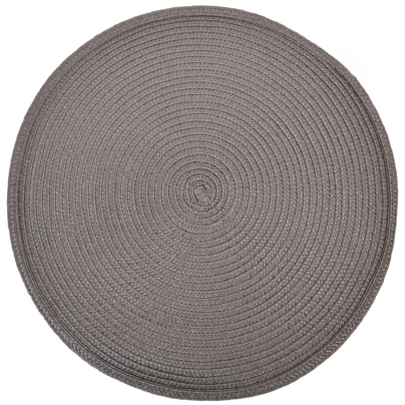 Подложка за хранене с кръгла форма, изработена от висококачествени материали в цвят Taupe, който е нещо средно между кафяво и сиво.
