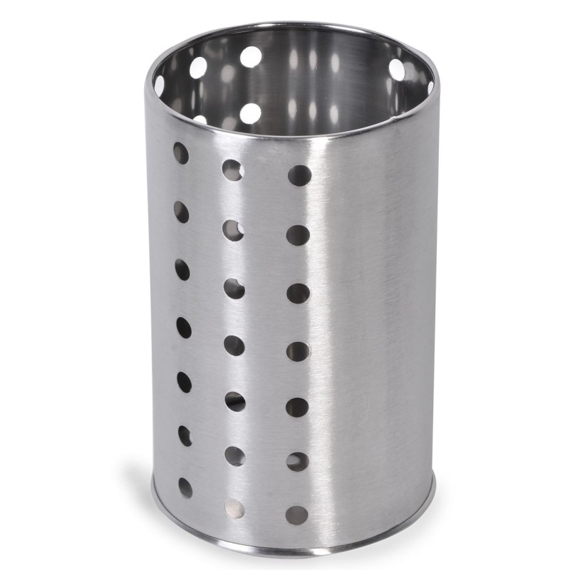 Метална поставка за прибори за хранене с цилиндрична форма.