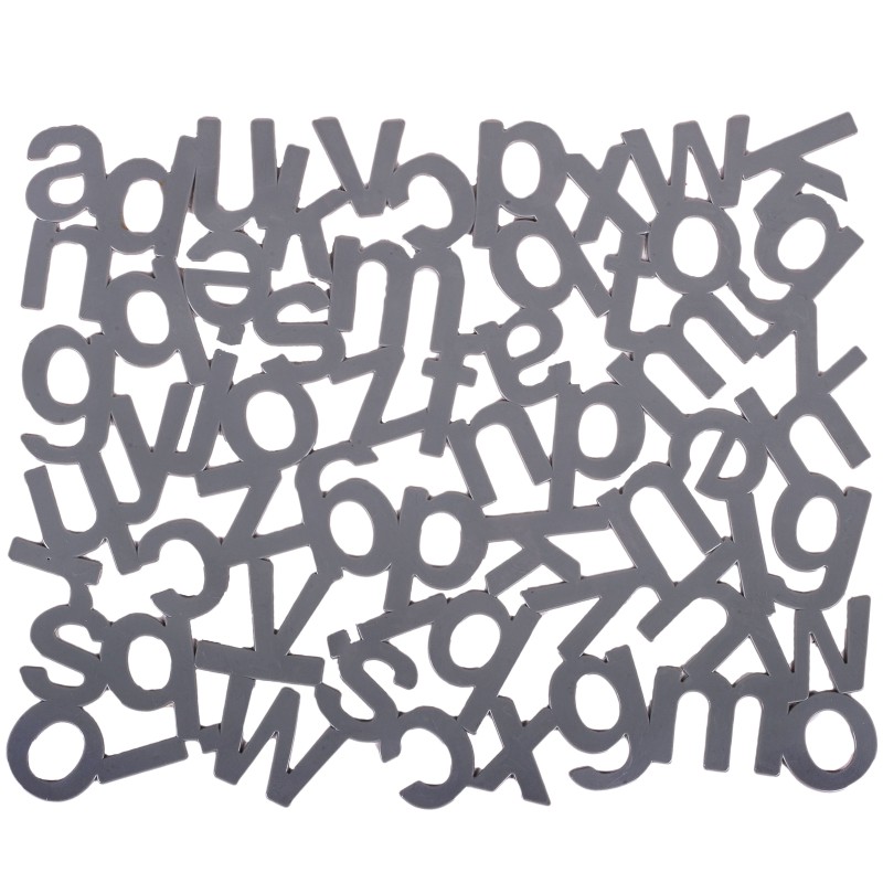 Релефна пластмасова подложка за кухненска мивка в цвят графит с принт на английската азбука.