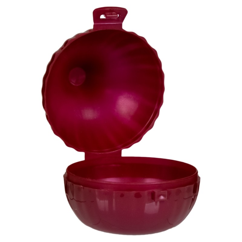 Пластмасова кутия в тъмно червен цвят за съхранение на кромид лук в хладилник - запазва лука винаги свеж и сочен.