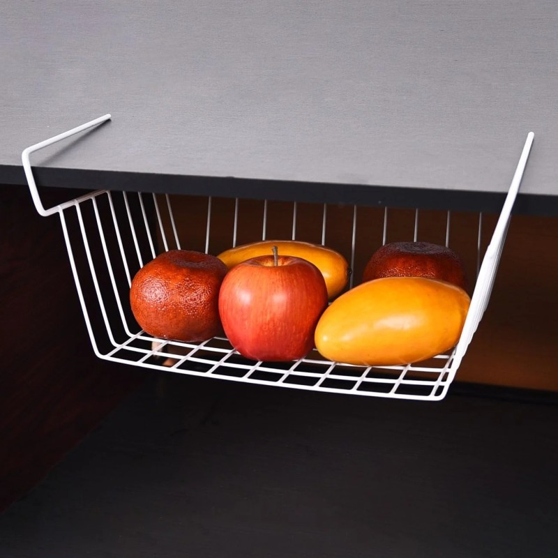 Висяща метална поставка в бял цвят за съхранение на кутии с подправки, брашно, захар, кафе и други. Лесен монтаж на шкафове и рафтове.