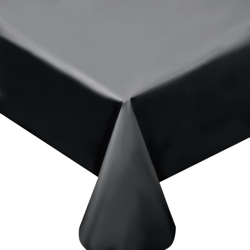 Мушама за маса за еднократна употреба, изработена от олекотена пластмаса в черен цвят.