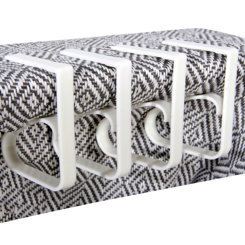 Комплект от 4 броя щипки за покривки или мушами за маса, изработени от здрава и устойчива пластмаса в бял цвят.