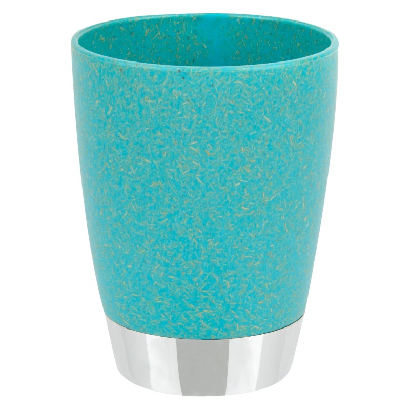 Чаша за четки и пасти за зъби, изработена от устойчива пластмаса в светло син цвят.