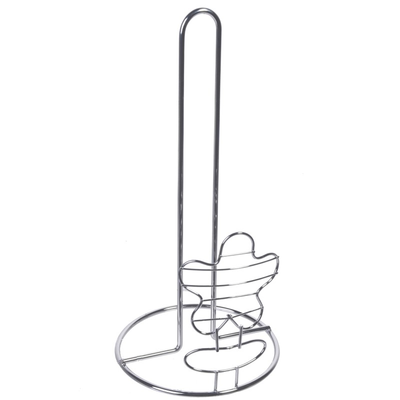 Настолна метална поставка за кухненска хартия, изработена от неръждаема стомана с хромирано покритие в сребрист цвят с декоративно цвете.